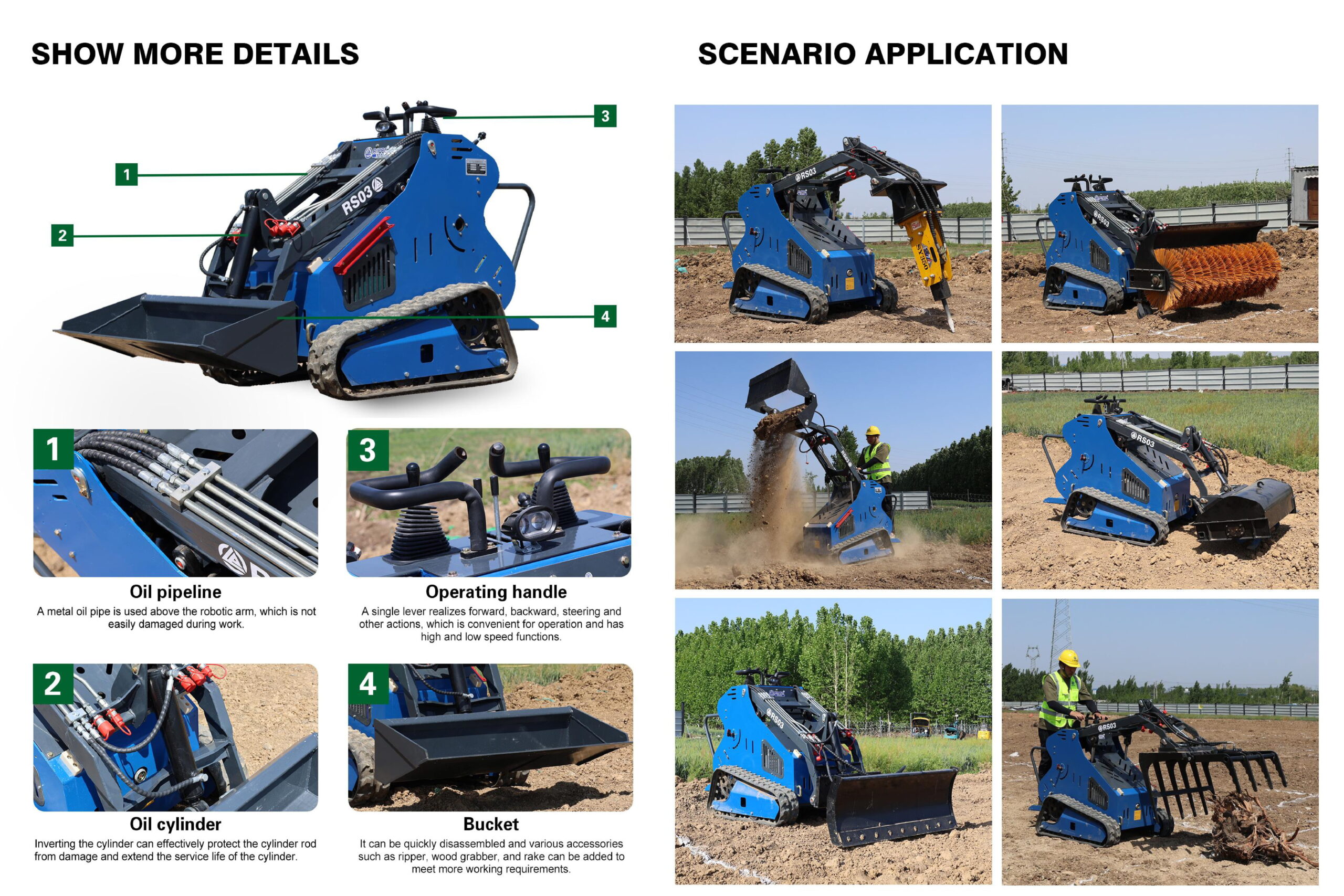Its small frame and 360° maneuverability make it ideal for landscaping, construction, and agricultural applications where space and precision matter.